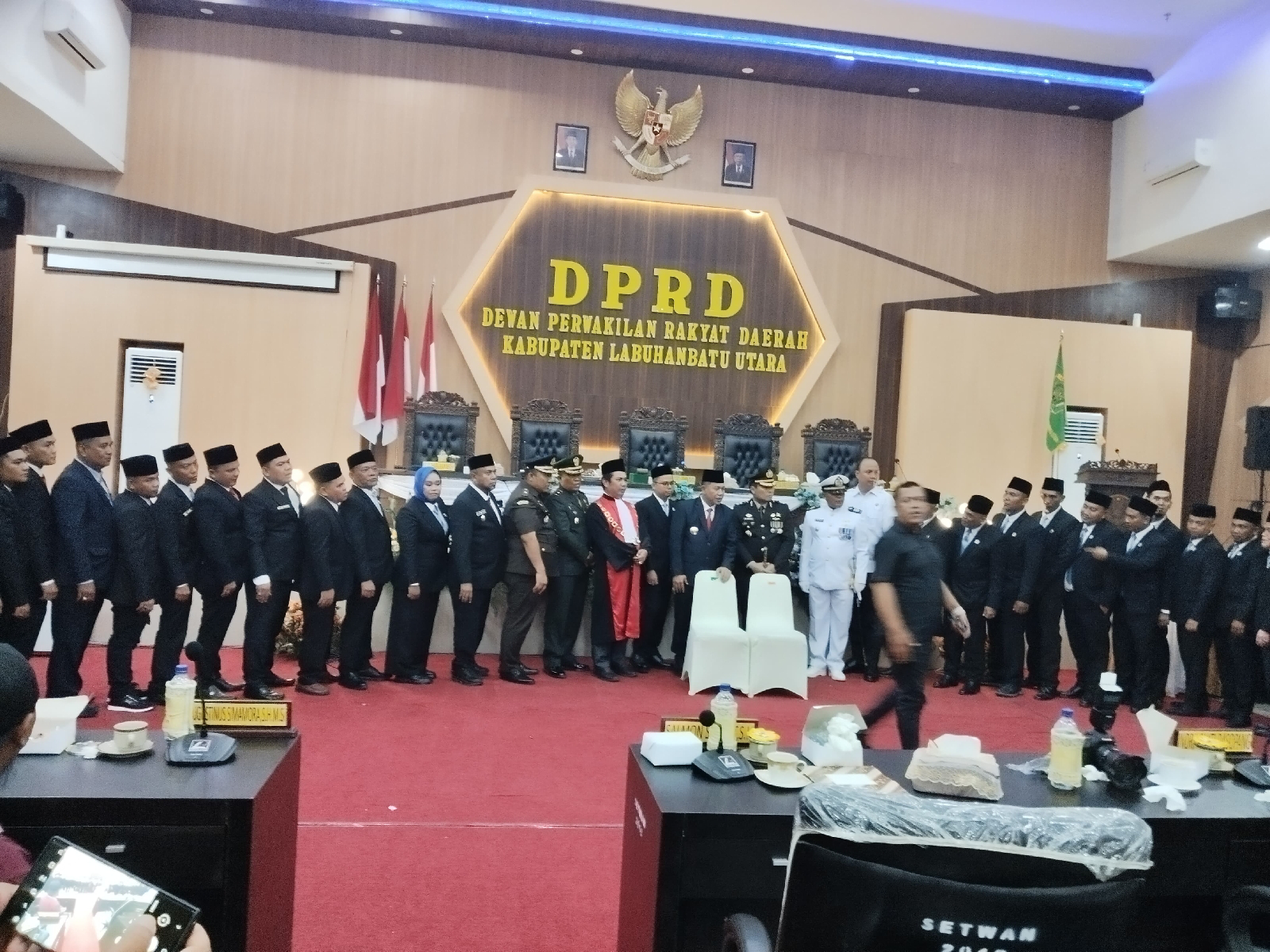 Labura - Harian Swara Jiwa - Sebanyak 35 anggota DPRD Kabupaten Labuhanbatu Utara (Labura) terpilih untuk masa keanggotaan 2024-2029 Pemilu 2024 dilantik di Gedung Paripurna pada Rabu (25/9/24).