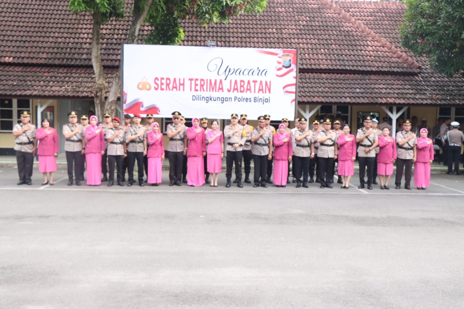 Binjai - Harian Swara Jiwa -Kapolres Binjai AKBP BAMBANG C. UTOMO, S.H., S.I.K., M.Si, memimpin pelaksanaan serah terima jabatan pejabat utama (PJU) polres Binjai. Serah terima jabatan tersebut dilaksanakan di lapangan apel polres Binjai, jalan Sultan Hasanuddin No.1 Binjai kelurahan satria kecamatan Binjai kota, provinsi sumatera utara, Rabu/05/02/2025 pukul 09.00 wib.